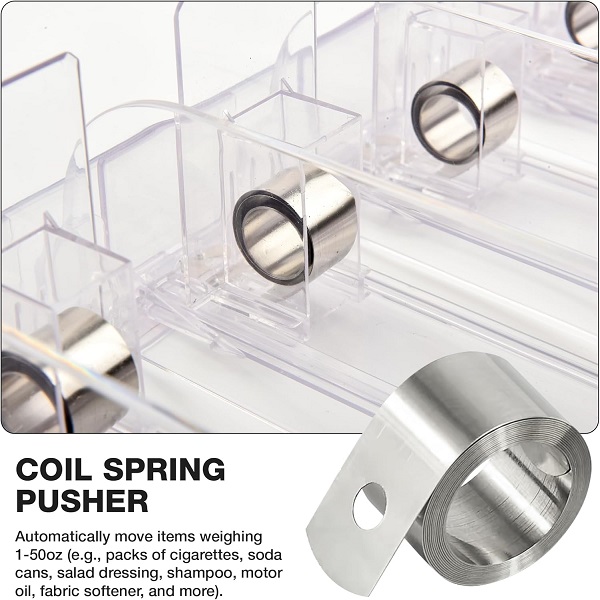 نمایش آسان کالا – محصولات را با یک هل دهنده قفسه فنری در حال حرکت نگه دارید. این مجموعه شامل ۲۱ جداکننده و ۲۰ هل دهنده است که میتوانند با قفسههایی تقریباً یا بزرگتر از ۱۵x۴۸ اینچ استفاده شوند.